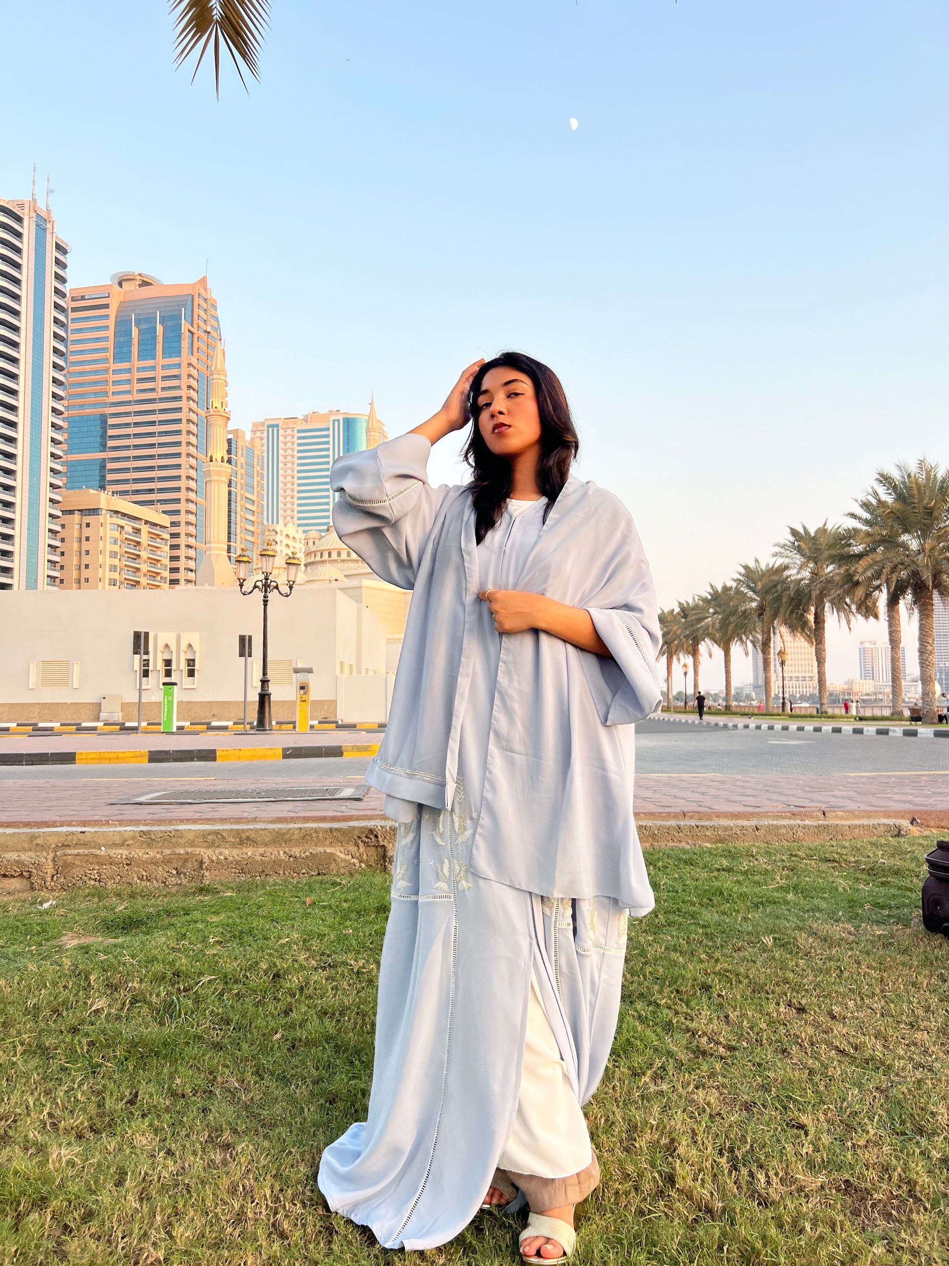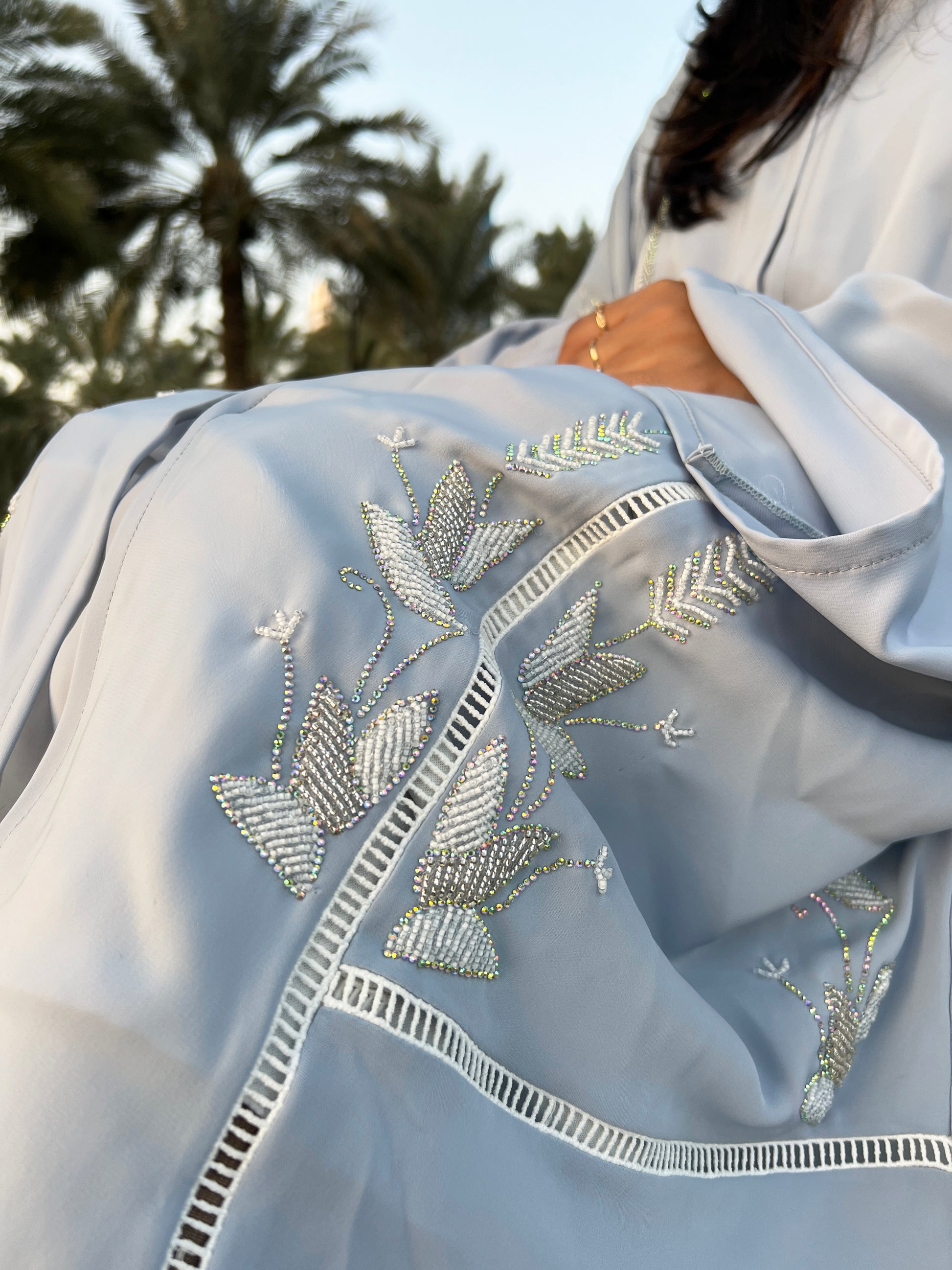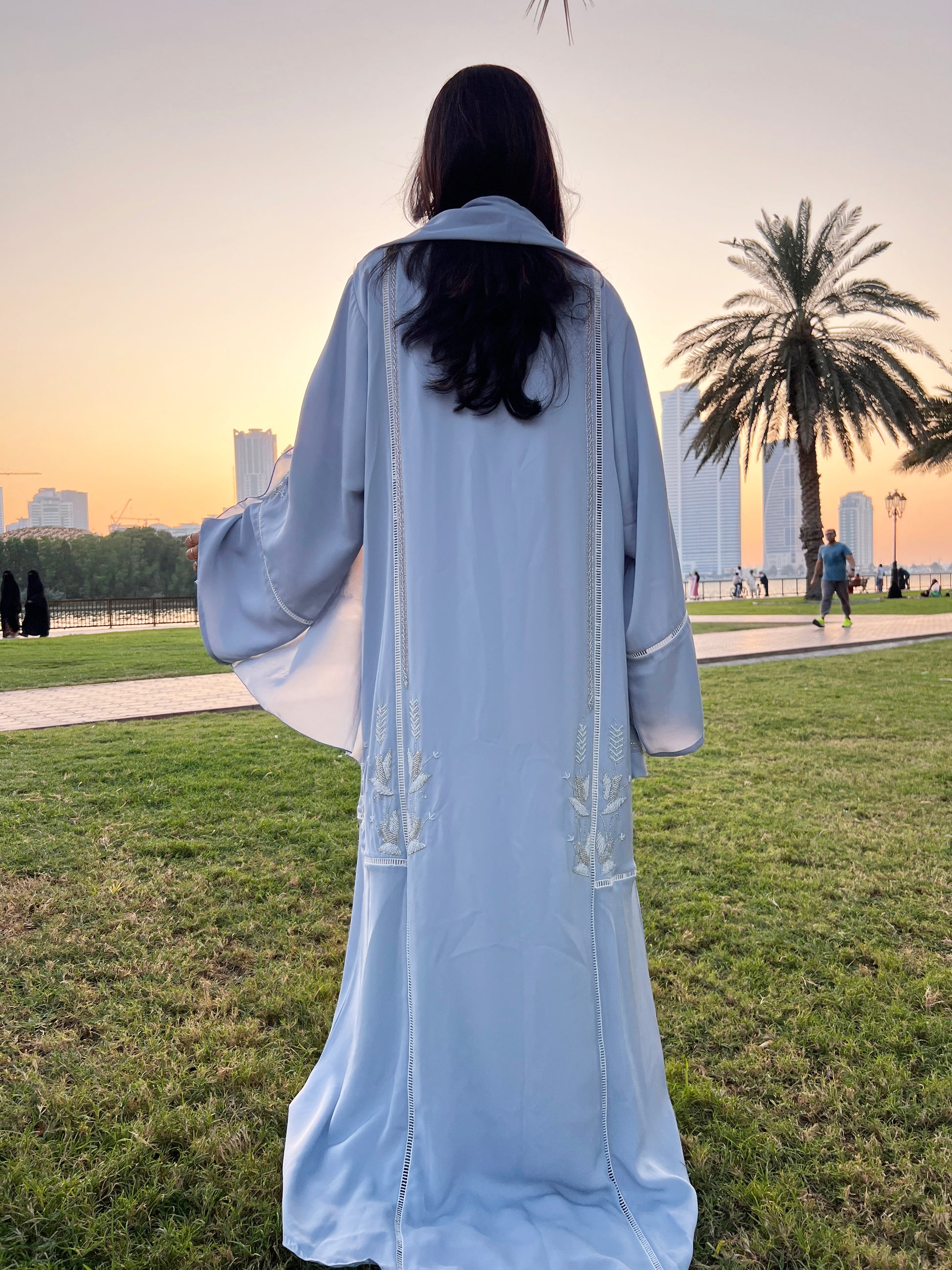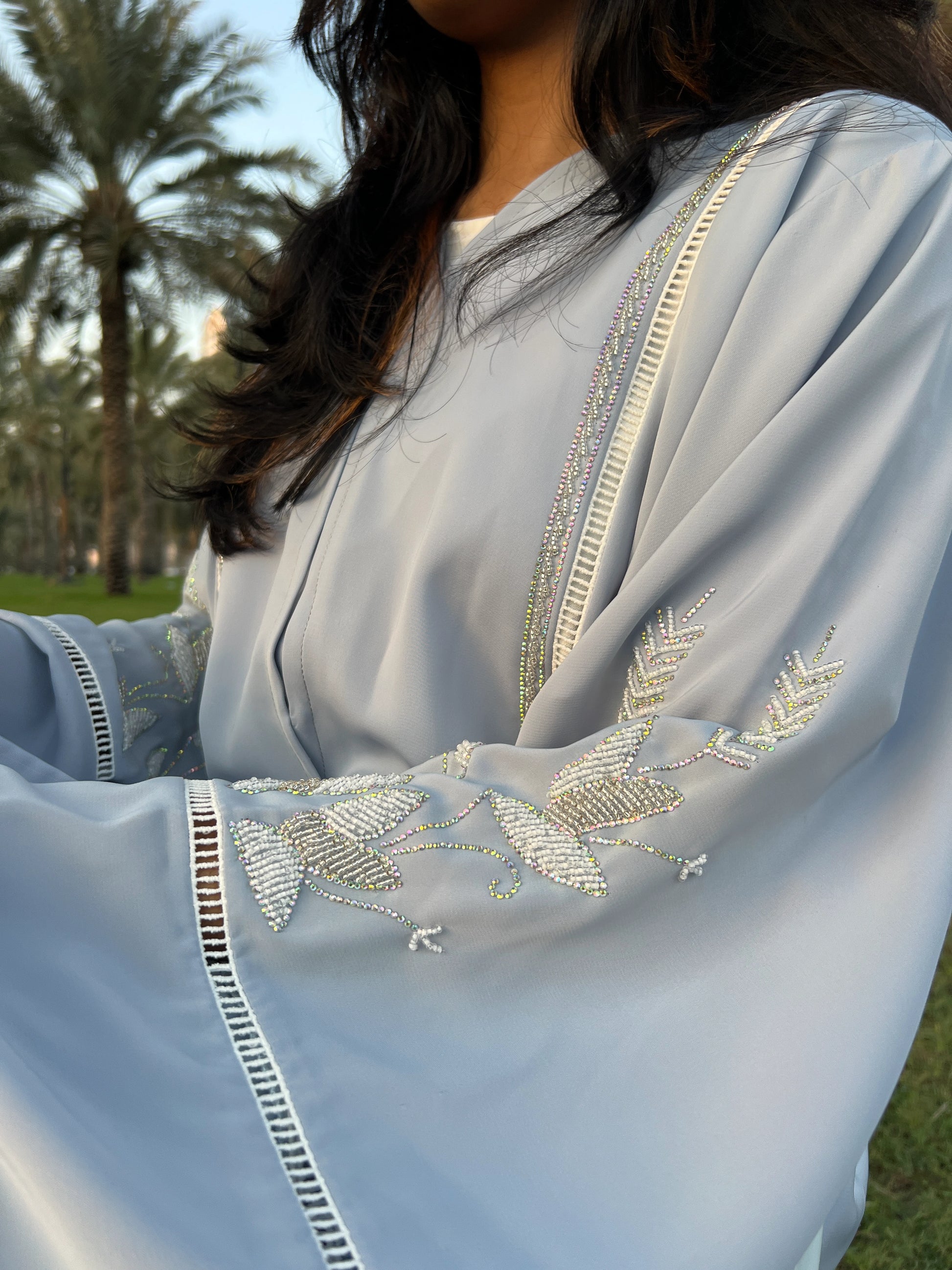 Abaya in Korean Nida with Pearl Detailing from Nyla collections showcases the beauty of luxurious abaya known for its lightweight feel and soft, elegant drape. Enhanced with intricate embroidery and fine handcrafted details, each piece reflects the artistry and precision of traditional techniques.