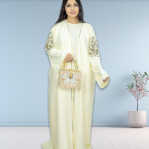 Sleek Korean Abaya Set – Handcrafted Detailing with Matching Dress